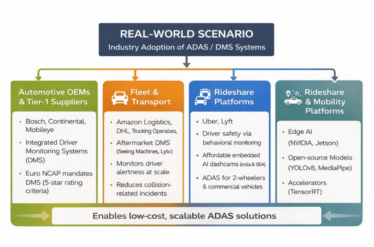 Imagine a long-haul truck driver on a night route, or a rideshare driver in heavy traffic. Fatigue sets in gradually. The head starts drooping. Eyes flutter. Attention drifts. A vehicle ahead slows suddenly. These are the moments where a system that can see, analyze, and alert — all within milliseconds — can prevent disaster.